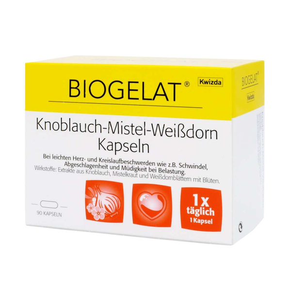 Die bewährte Dreifachkombination aus Knoblauch, Mistel, Weißdorn – jedes für sich ein kleines Kraftpaket, gemeinsam unterstützen sie unterschiedliche Funktionen des Herz- Kreislaufsystems.