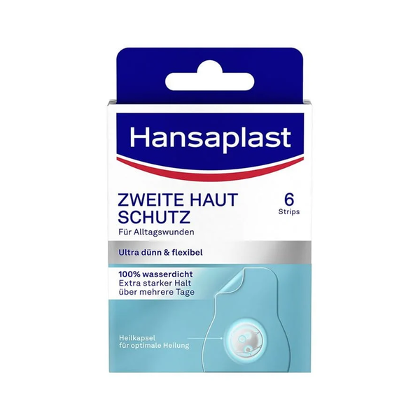 Hansaplast Zweite Haut Schutz Pflaster: Ultra dünnes, flexibles und selbstklebendes Pflaster für den Schutz von Wunden, wie sie im Alltag vorkommen. Das wasserdichte Pflaster schafft eine schützende Barriere, welche vor Schmutz und Bakterien schützt und eine sichere Umgebung für schnelle Heilung bietet. Es schafft feuchte Wundheilungsbedingungen und unterstützt so den natürlichen Heilungsprozess. Es sorgt für ein angenehmes Tragegefühl und bietet mindestens 72 Stunden extra-starken Halt für verlässlichen Schutz von oberflächlichen Wunden.