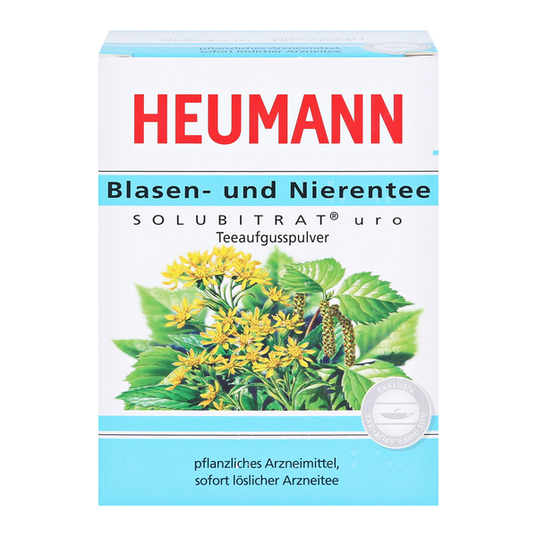 Heumann's Blasen- und Nierentee Solubitrat ist ein pflanzliches Arzneimittel aus Goldrutenkraut und Birkenblättern. Zur Durchspülung bei krampfartigen und entzündlichen Erkrankungen der Harnwege, bei Nierengrieß, zur Vor- und Nachsorgebehandlung bei Harnsteinen.