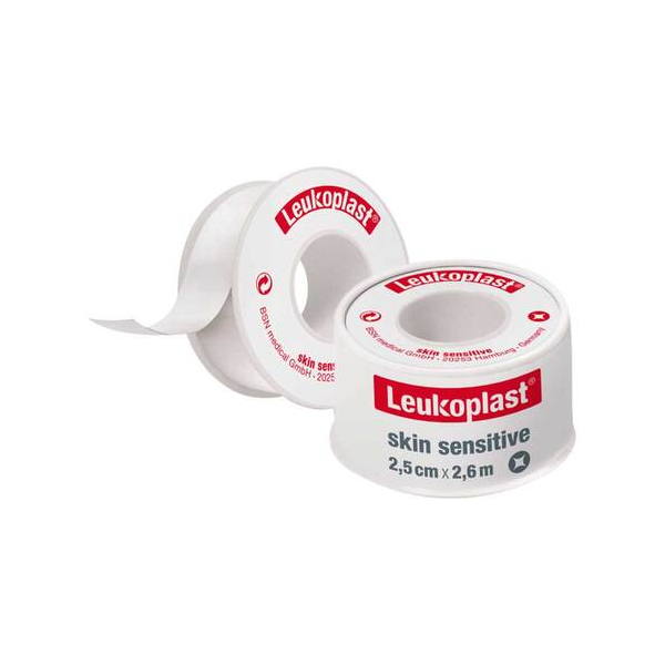 Leukoplast® skin sensitive ist ein wasserabweisendes, leicht von Hand reißbares Fixierpflaster, dass auf Grund seines sanft haftenden Silikonauftrages für besonders empfindliche Haut geeignet ist.