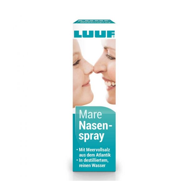 LUUF® Mare Nasenspray ist eine isotone Lösung mit hochwertigem Meervollsalz aus dem Atlantik in reinem destillierten Wasser. Er wird zur Befeuchtung und Reinigung der Nasenschleimhäute eingesetzt und beugt so dem Austrocknen der Nase vor. Besonders zur Unterstützung bei Erkältungssymptomen, wie Schnupfen und verstopfter Nase und bei erhöhter Belastung durch Staub, Pollen oder Rauch.