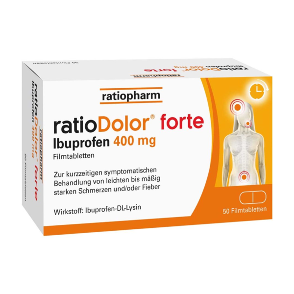 ratioDolor forte Ibuprofen 400 mg ist ein schmerzstillendes und fiebersenkendes Arzneimittel (nicht-steroidaler Entzündungshemmer, auch als nicht-steroidales Antirheumatikum bezeichnet [NSAR]).