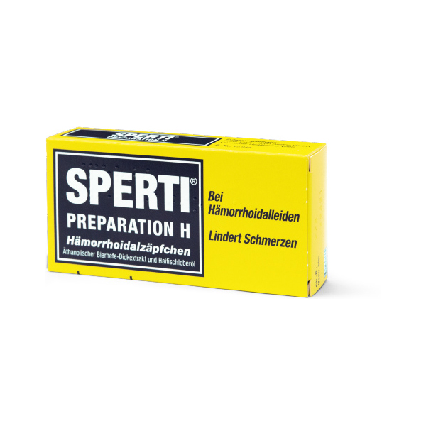 Sperti Preparation H ist ein entzündungshemmendes Arzneimittel zur Behandlung von Hämorrhoidalleiden und läßt Hämorrhoiden schrumpfen, lindert Schmerzen, beseitigt Brennen, Jucken und Stechen. Bereits bei den ersten Anzeichen für ein Hämorrhoidalleiden sollte die Behandlung rechtzeitig begonnen werden, um eine rasche und nachhaltige Wirkung zu erzielen.