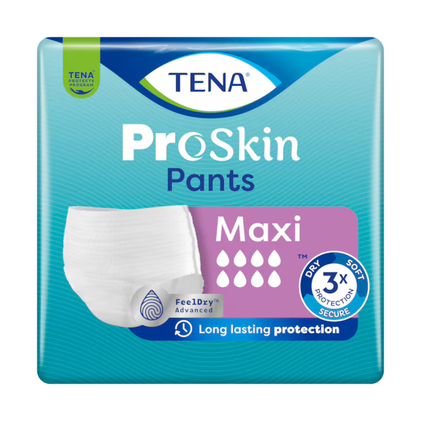 TENA ProSkin Pants Maxi sind Inkontinenzhosen, die bis zu 100 % Sicherheit bei mäßigem bis starkem Harnverlust bieten. Sie absorbieren Feuchtigkeit im Handumdrehen und sorgen für lang anhaltende Trockenheit bei Tag und bei Nacht. Die bewährten Einweg-Inkontinenzslips sind für Damen und Herren gleichermaßen geeignet und ideal für einen aktiven Lebensstil – Tag für Tag.